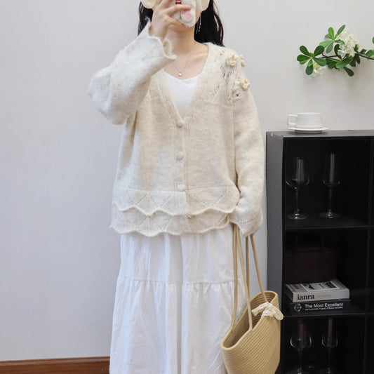 Design Sense Three-Dimensional Flower Knitted Cardigan Women's Sweet Soft and Loose Sweater Jacket