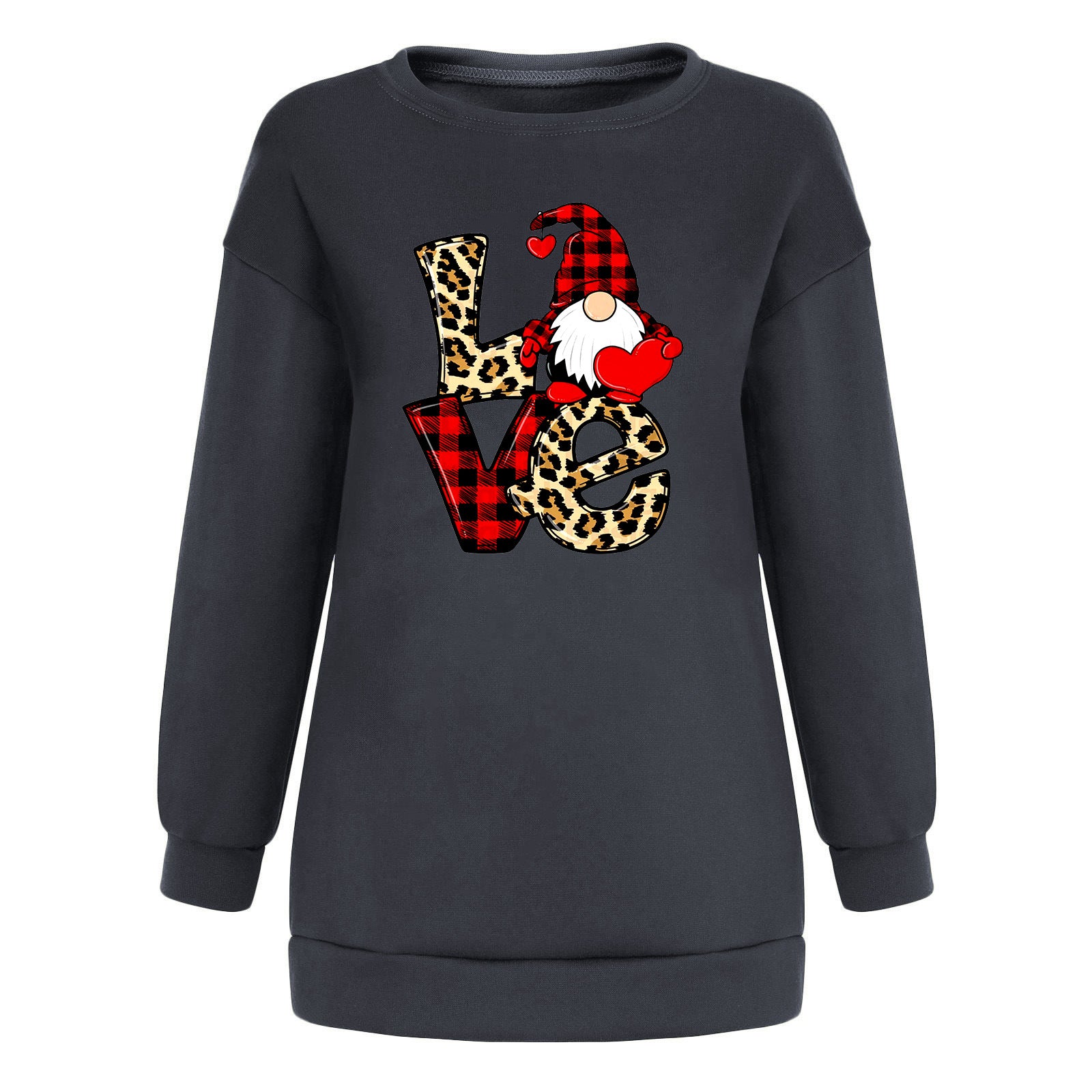 Red and black checkered Santa Claus love letter patchwork printed shoulder down hoodie