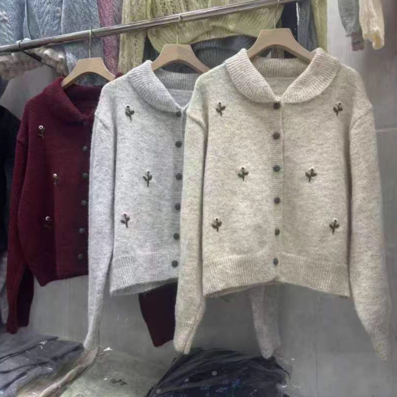 Sweet Retro Embroidered Knit Cardigan Women Soft Versatile Gentle Style Sweater Coat